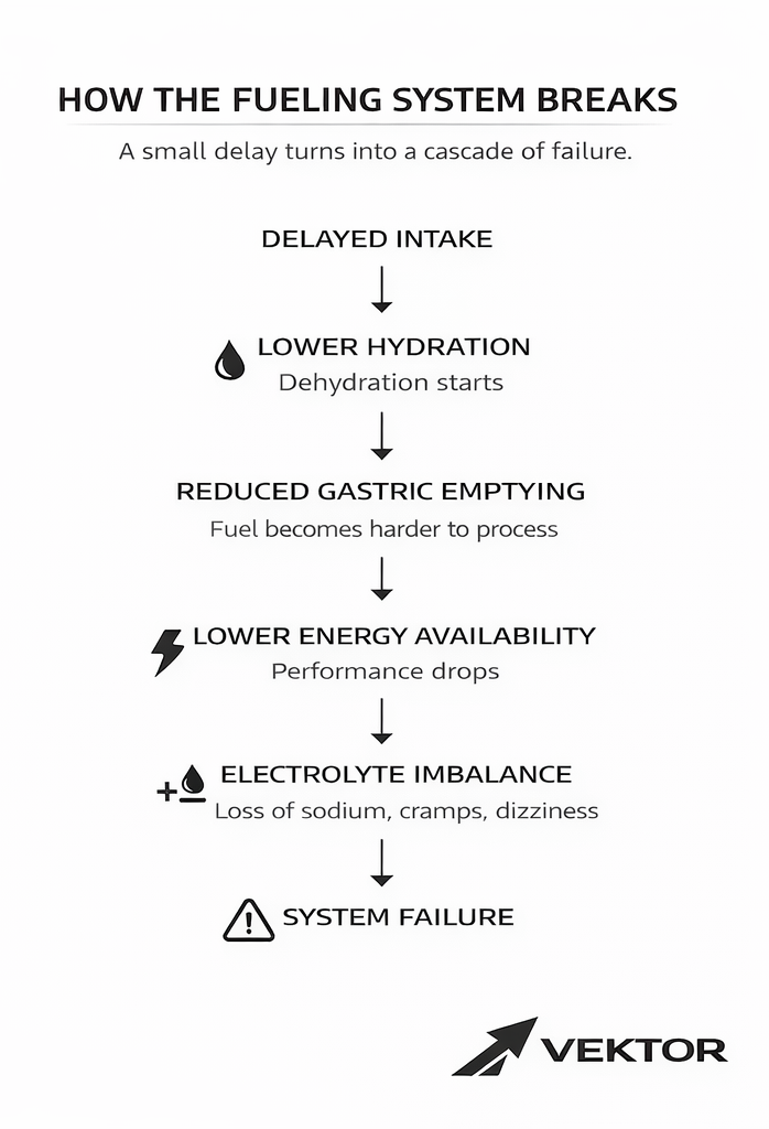Delayed sip⬇️Hydration drops⬇️Absorption suffers⬇️Electrolytes drift⬇️Performance breaks